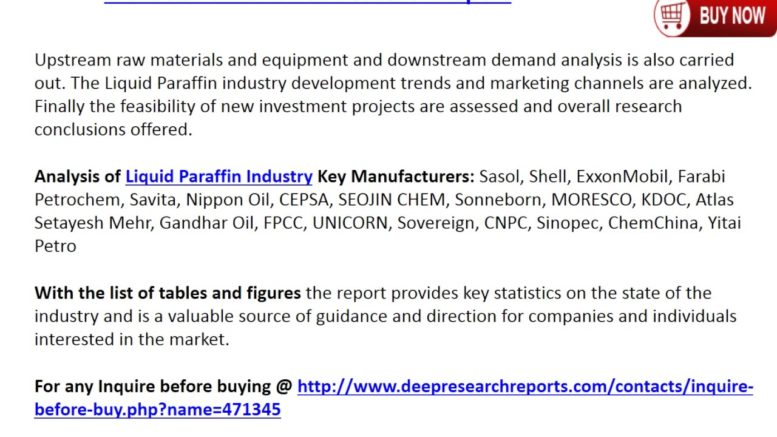 DeepResearchReports.com the exclusive leading provider of market research reports publishes research report on “Global Liquid Paraffin Industry”. To Know more @